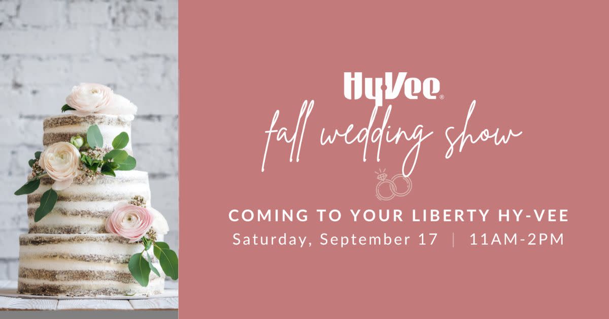 Save the Date for the Fall Wedding Show at your Liberty Hy-Vee! ❤️ FREE for everyone ❤️ Gift bags for the first 500 customers ❤️ Register for over $300 in gift cards and prizes ❤️ Sample Hy-Vee cakes, catering, selections from our Wine & Spirits and more ❤️ Get inspired by floral arrangements by our designers ❤️ Local vendors for all your wedding needsImages